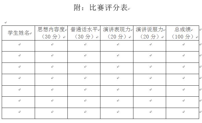 参赛选手必须用国家通用语言(即普通话)进行演讲,演讲内容必须符合大赛主题要求,自拟题目,每名参赛选手演讲时间不得超过10分钟。